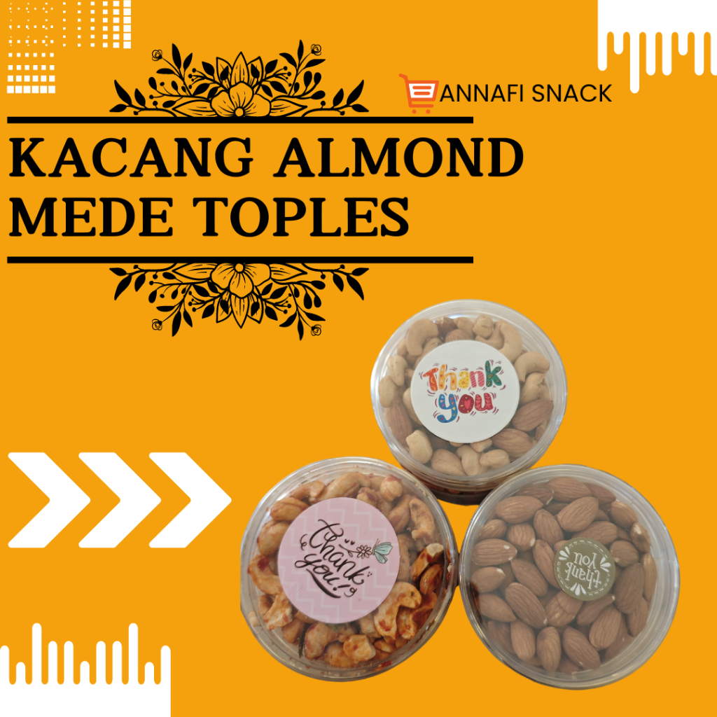 KACANG ALMOND DAN MEDE TOPLES DENGAN 3 VARIAN YAITU MEDE ORI , MEDE PEDAS , ALMOND MIX MEDE DENGAN BERAT 250 GRAM