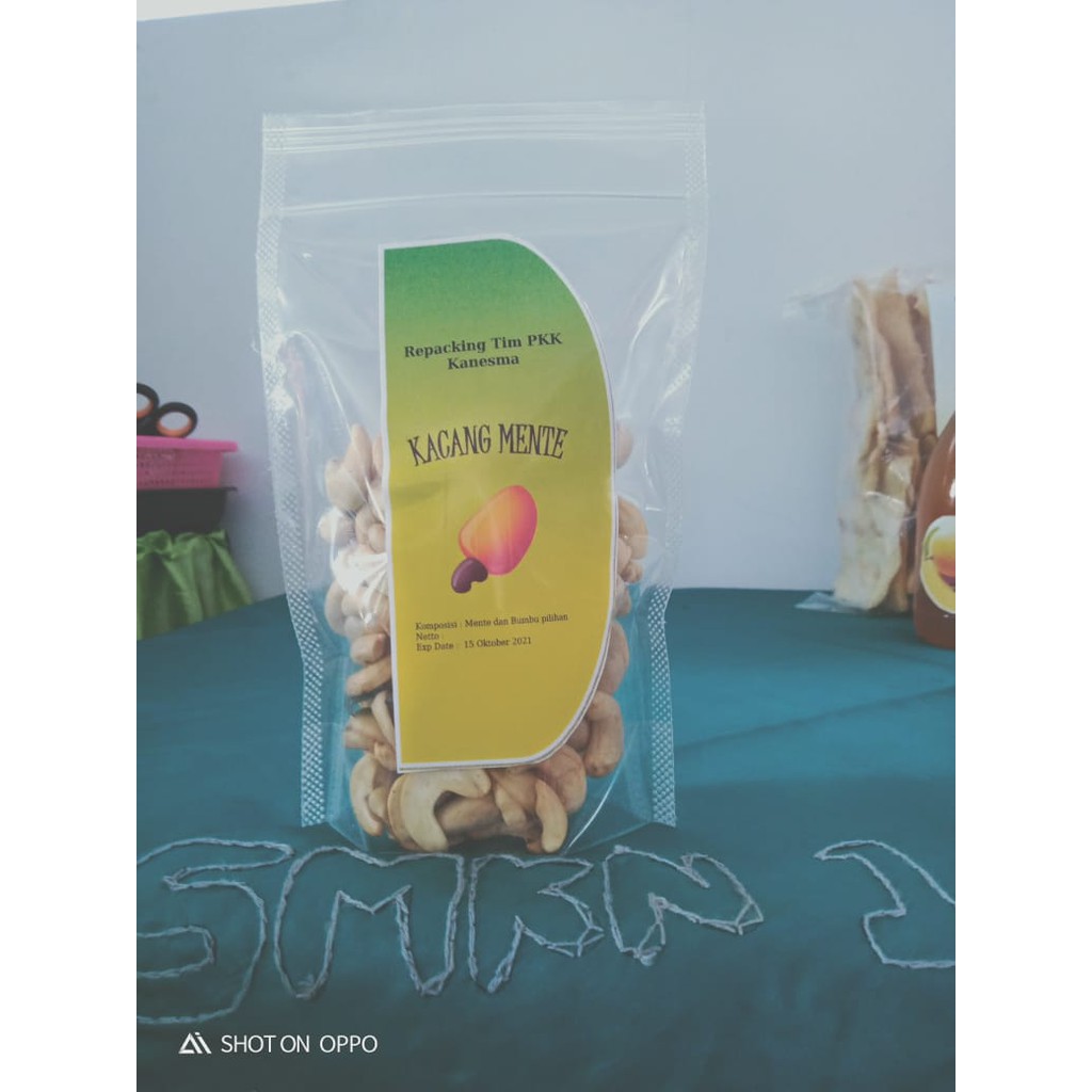 Kacang mete merupakan biji jambu monyet yang sering dijadikan berbagai menu makanan. Umumnya, biji jambu mete ini sebelum dikonsumsi dipanggang terlebih dahulu. Rasanya yang gurih dan renyah menjadikan kacang mete cukup digemari oleh semua lapisan masyarakat.Diproduksi oleh siswa alumni Kanesma dan dikemas ulang oleh Tim PKK Kanesma
