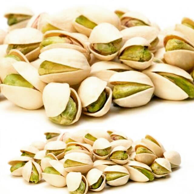 Kacang Pistachios (California), dengan kacangnya yang berwarna hijau memberikan rasa yg sangat gurih & lezat, sangat nikmat untuk dijadikan hidangan.