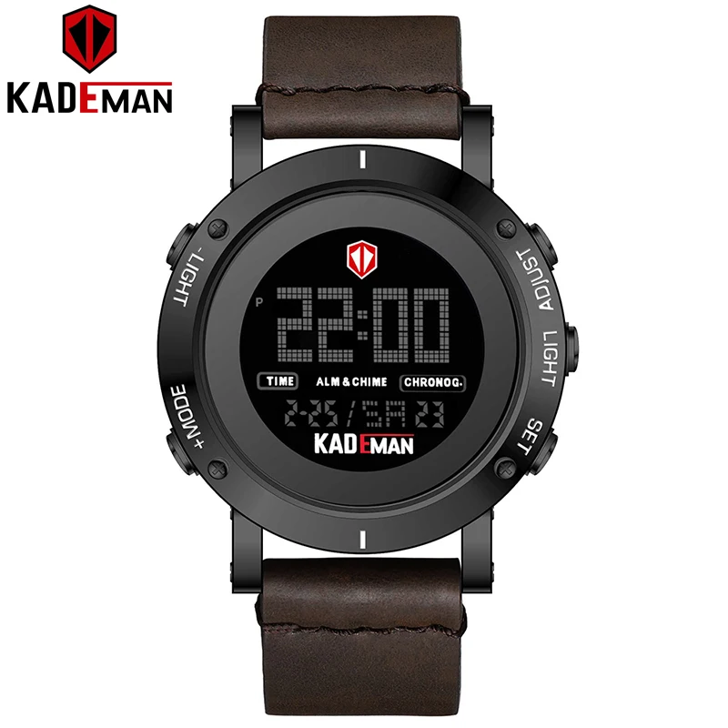 KADEMAN оригинальные военные мужские спортивные часы 3ATM LCD цифровой Топ люксовый бренд повседневные кожаные Наручные часы Relogio Masculino