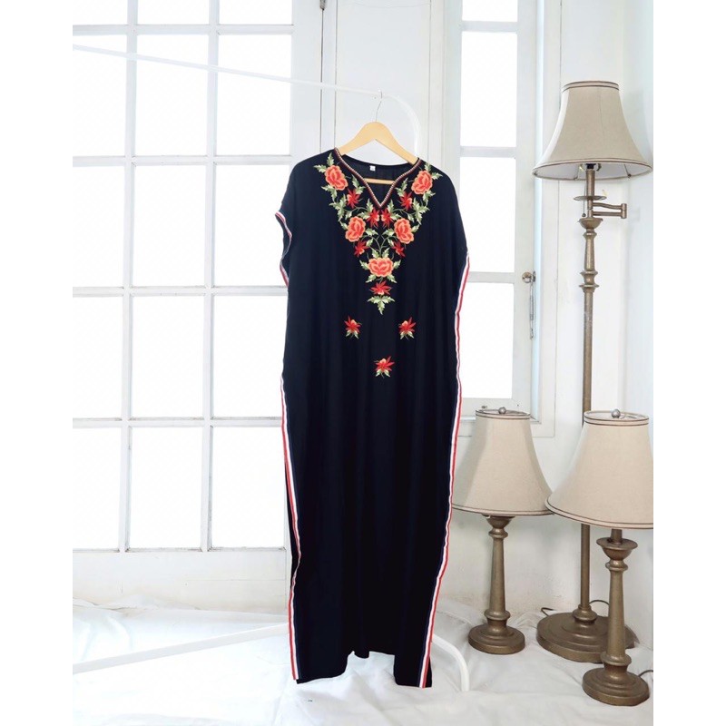 kaftan / daster material katun rayon premium dengan hiasan bordir pada dada sehingga mempercantik tampilan ukuran muat hingga XXL LD 130cm PB 125cm #kaftan #bajudaster #daster #dastercantik #dastermurah #homedress #dailyware #bajurumahan #baju #bajucantik #pajamas #dailyoutfit #bajumurah #bajukekinian #longdres #pajamas