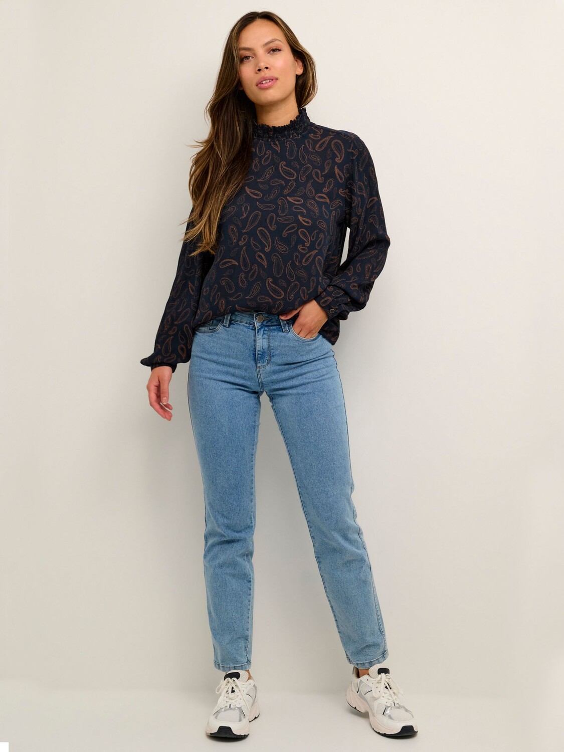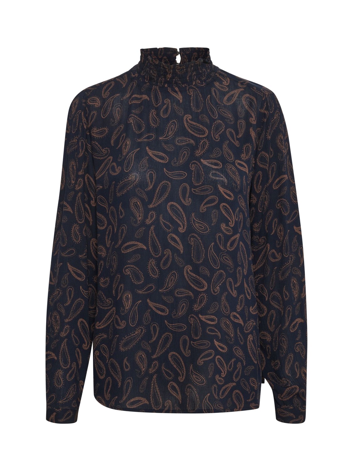 KAFFE Блузка с высоким воротником и длинными рукавами Tinna, Темно-синий/Тоффи
