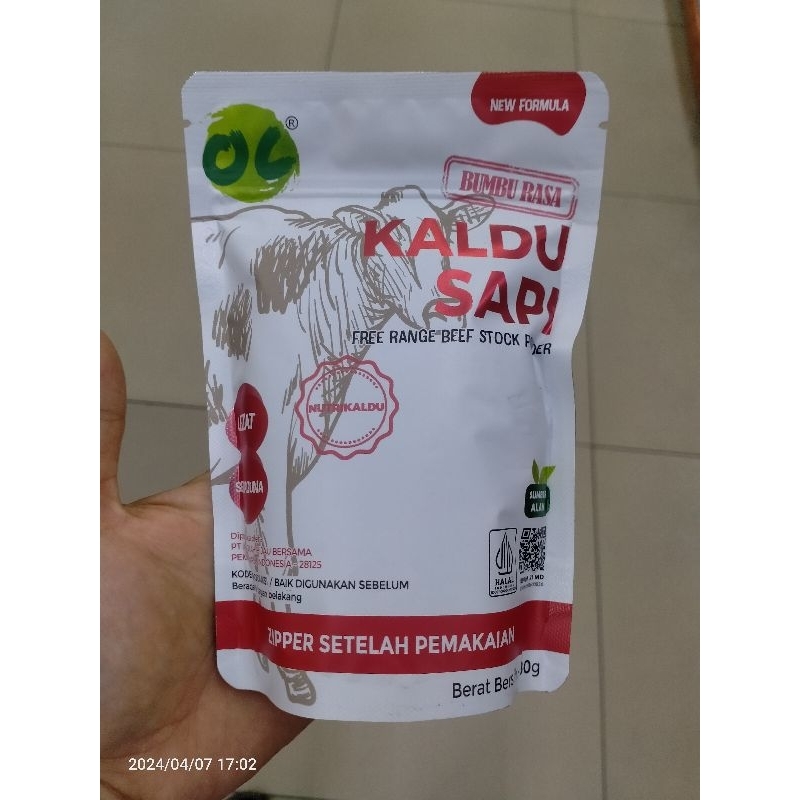 Garam, Pati Jagung, Daging Sapi Bubuk 8%, Ekstrak Ragi, Bawang Bombay, Lada Putih, Pala, Gula