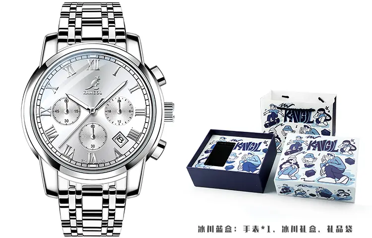 KANGOL КАНГОЛ Мужские часы, Черная латная аристократия [Синяя коробка ледника]