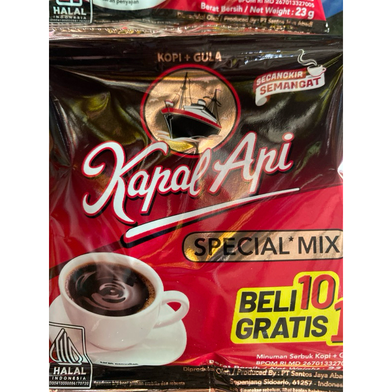 Kopi Kapal Api terbuat dari biji kopi pilihan dan diproses dengan mesin yang paling modern yang menghasilkan kopi berkualitas tinggi dengan Aroma terbaik dan Rasa yang enak. Kapal Api Special Mix Dibuat dari Biji kopi pilihan yang diolah dengan mesin yang paling modern dan campuran gula murni. Menjadikannya paduan spesial dari kopi dan gula. Kemasan Praktisnya, membuat kopi anda siap seduh dengan aroma kopi senikmat selera pilihan. Mulai hari Anda dengan secangkir semangat untuk Indonesia dengan Kopi Kapal Api