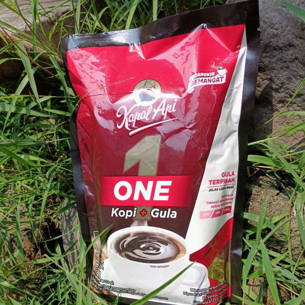 KAPAL API ONE (KOPI+GULA).GULA TERPISAH JELAS LEBIH ENAK.TENTUKAN TINGKAT KEMANISAN SESUAI SELERA MU.HALAL.BPOM RI