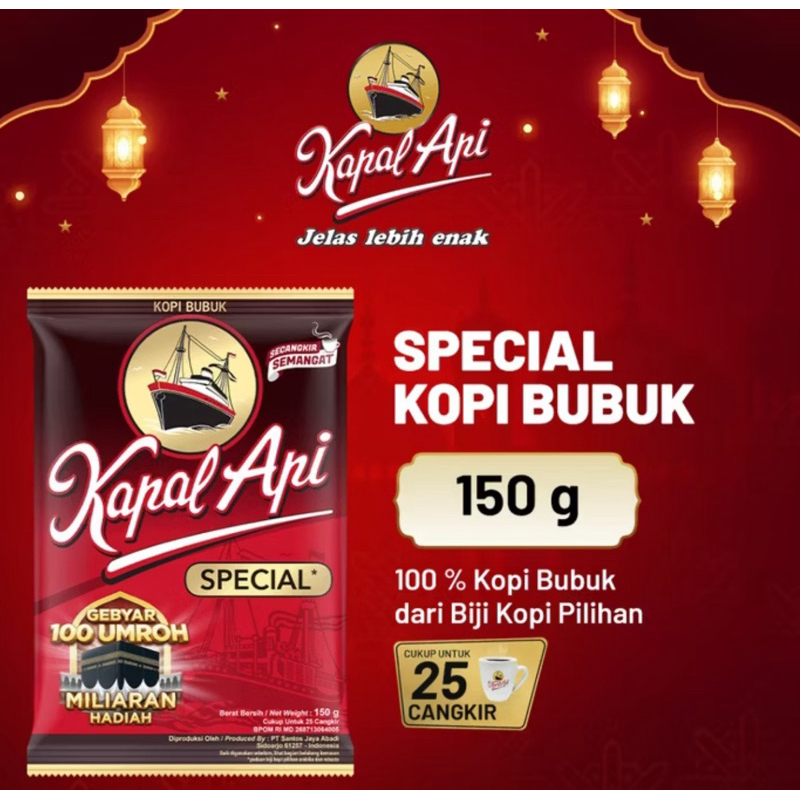 Kopi Kapal Api Special Merah adalah kopi bubuk yang terbuat dari biji kopi pilihan, yang menghasilkan aroma dan rasa yang lebih enak dibandingkan kopi Kapal Api lainnya. Kapal Api Special Merah dirancang untuk memberikan semangat dan kesegaran di pagi hari.