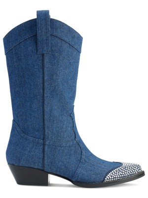 KARL LAGERFELD Женские темно-синие ботинки в стиле вестерн Paris с острым носком на блоке и каблуке, Navy, KL226025