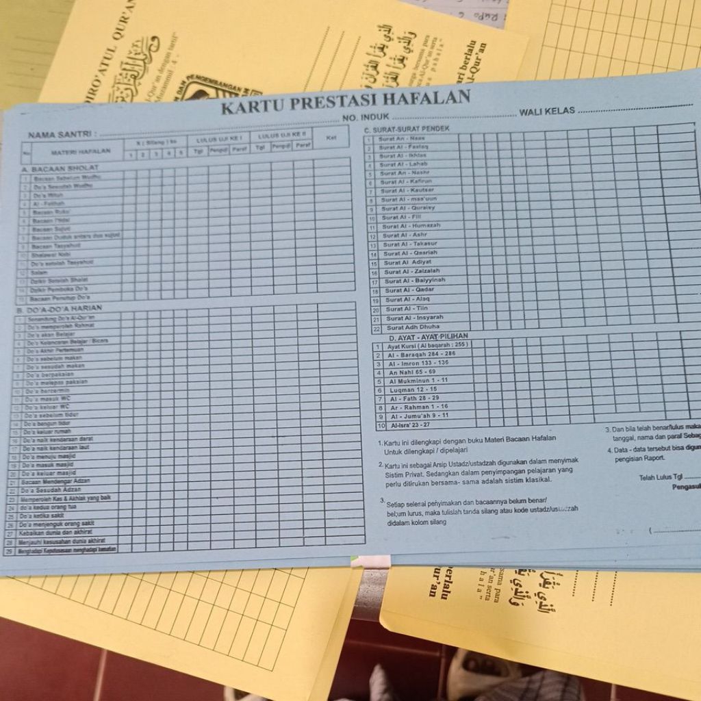 KARTU PRESTASI HAFALAN