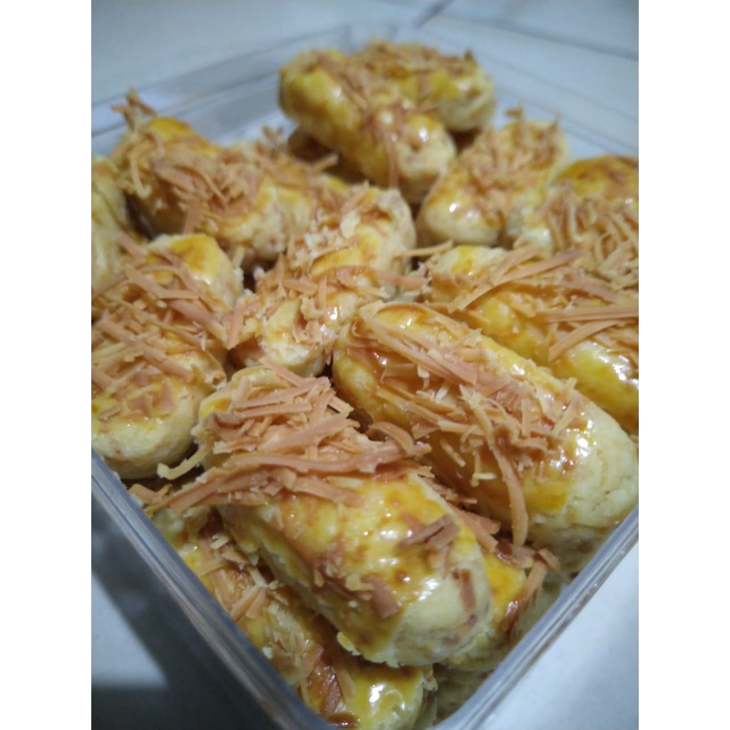 kue kering yang dibuat dari adonan tepung terigu, telur, margarin, dan parutan keju. Kue ini berbentuk persegi panjang, panjangnya sekitar 3-4 cm dan lebarnya 1 cm, dan dipanggang di dalam oven hingga kuning keemasan