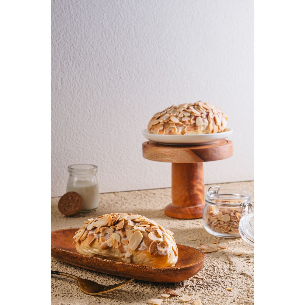 Roti lembut dengan white coklat dan ditaburi kacang almond