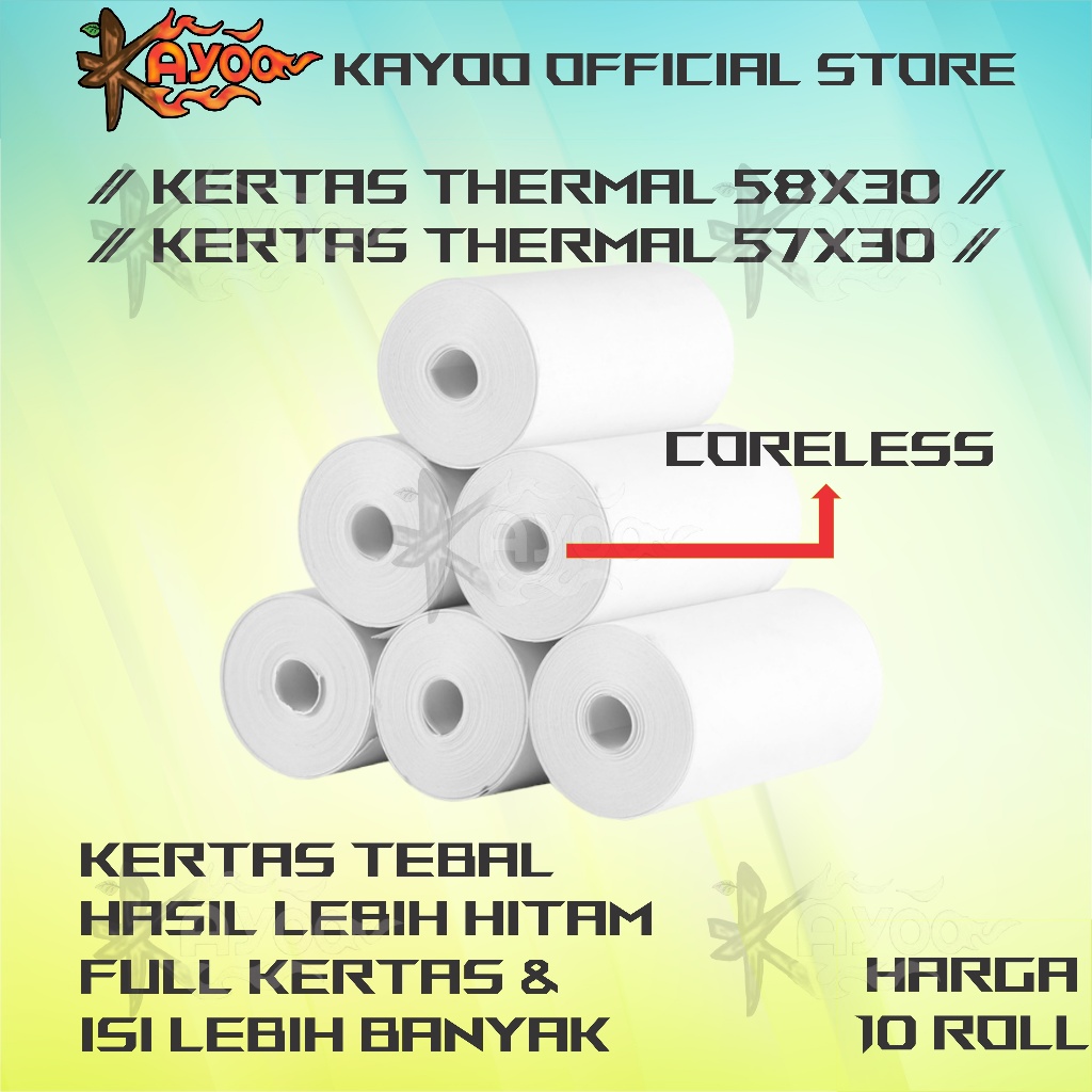 KAYOO 10 ROLL KERTAS STRUK THERMAL 58X30 57X30 PAPER ROLL MINI PRINTER BLUETOOTH 58MM