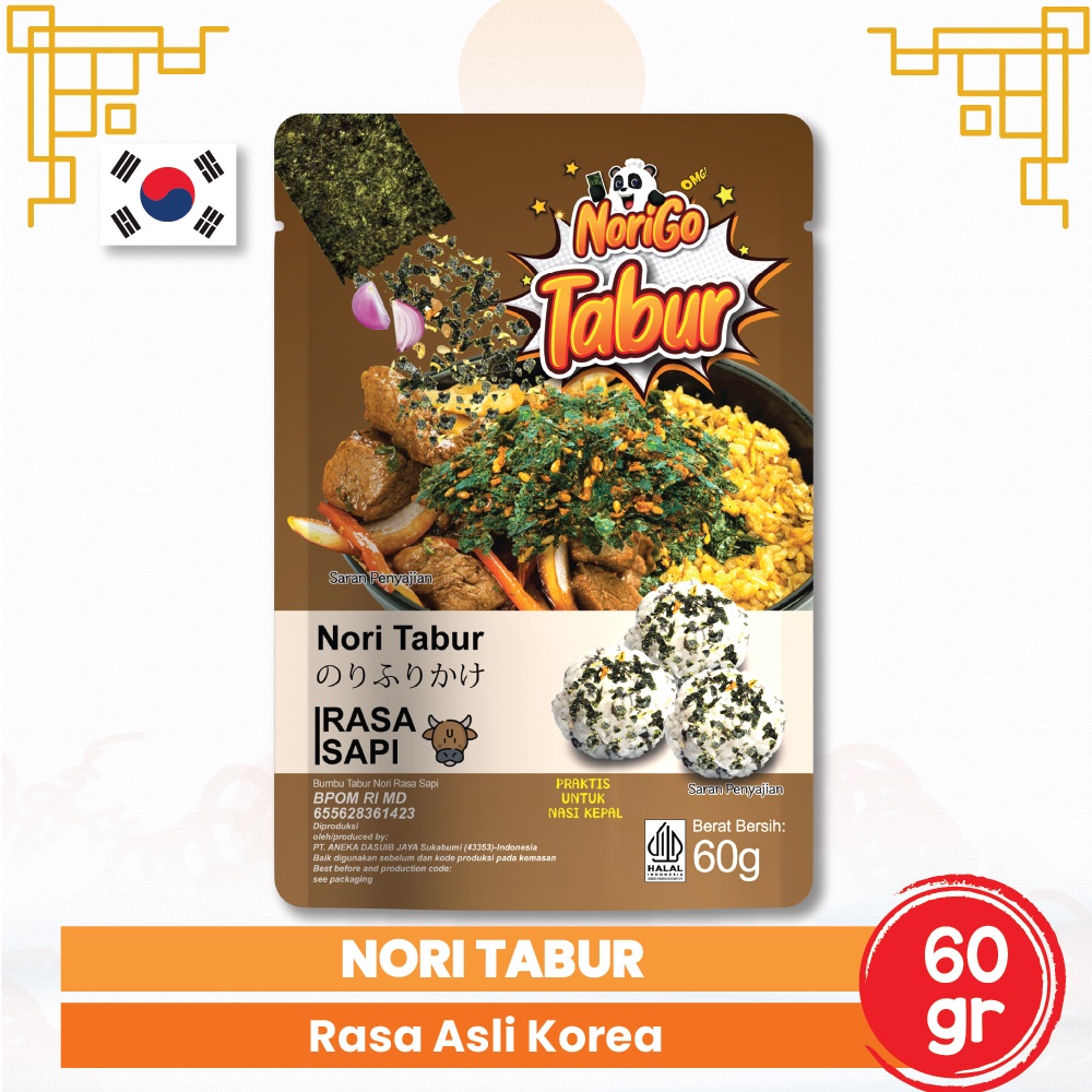 Nori Tabur ini terbuat dari perpaduan rumput laut panggang, bawang goreng dan wijen yang digunakan sebagai tambahan atau taburan untuk menu makanan.