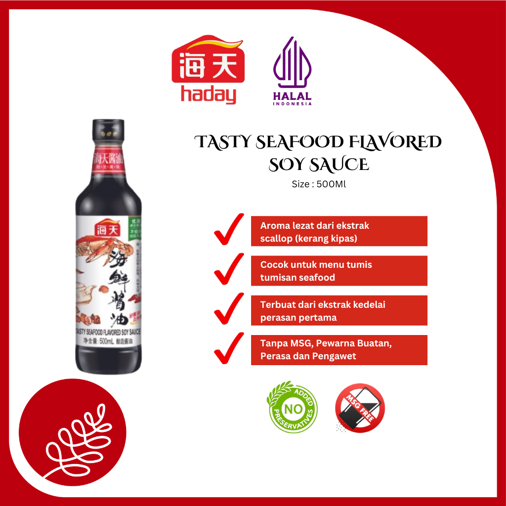 Haday Tasty Seafood Flavoured Soy Sauce adalah kecap asin berkualitas tinggi dengan tambahan rasa dan aroma seafood yang khas. Cocok digunakan untuk memasak hidangan laut, menambah kedalaman rasa pada sup, tumisan, hingga saus cocolan.