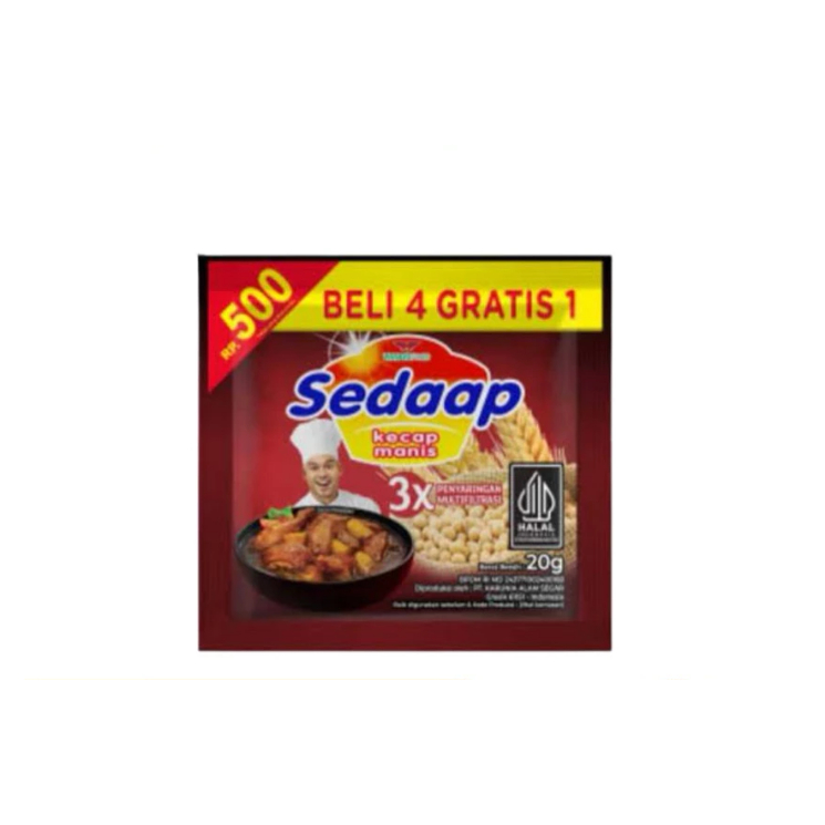 Kecap Sedaap merupakan kecap manis yang terbuat dari biji kacang kedelai pilihan dan bahan-bahan alami yang bermutu tinggi lainnya. Diolah dengan natural fermentasi serta penyaringan multifiltrasi (3 kali penyaringan), menghasilkan kecap manis yang bermutu tinggi – lebih hitam, gurih, dan kental. Kecap Sedaap yang sudah tersertifikasi halal ini akan membuat masakan Anda dengan rasa yang tak terlupakan.
