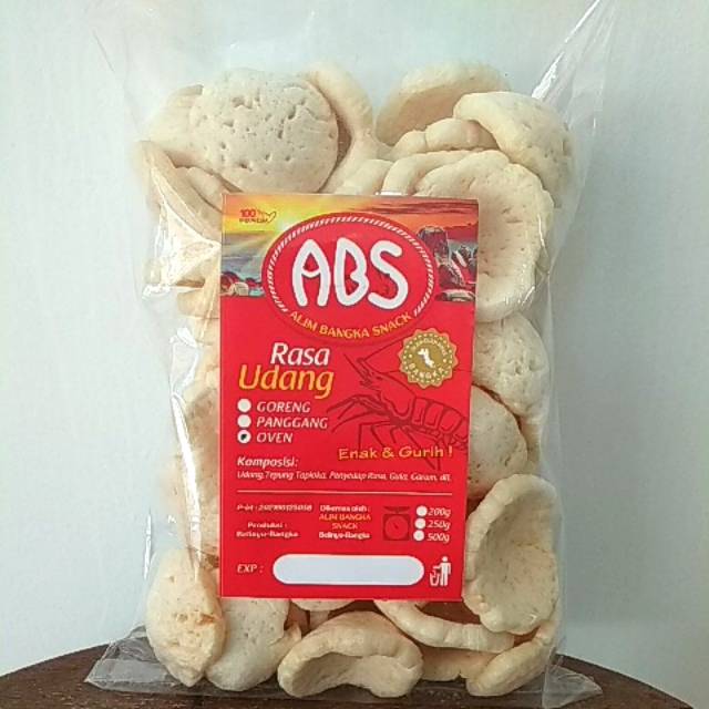 Kerupuk khas Bangka rasa udang yg di oven cap ABS.. tidak ada rasa amis.. rasanya enak apabila dimakan bersamaan dengan lauk lainya..