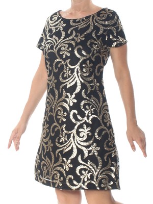 KENSIE Женское черное вечернее платье прямого кроя с короткими рукавами и вырезом под горло с принтом, Черный