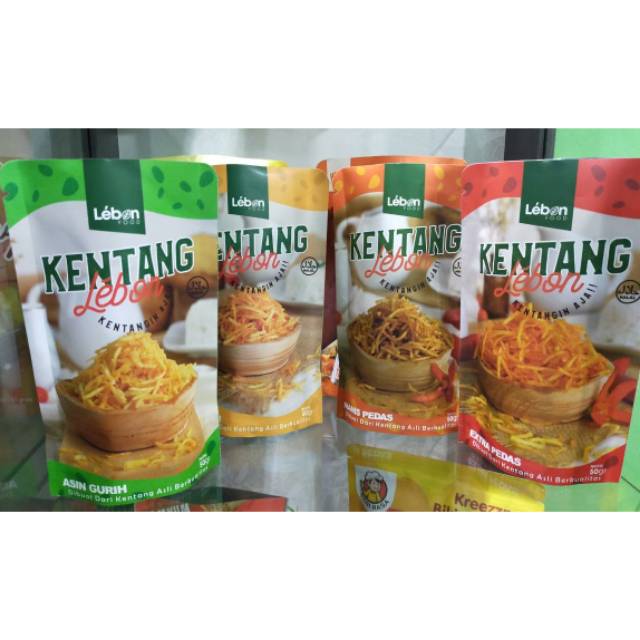 Olahan kentang yang garing dan renyah. Cemilan sehat tanpa pengawet dan msg. Bisa dinikmati mulai dari anak anak. Tersedia berbagai varian rasa asin gurih, keju, manis pedas dan ekstra pedas.