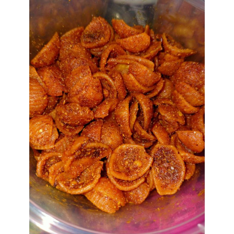 kerang pedas dengan rasa gurih renyah pedasnya khas , dikemas dalam pouch mini dan elegan