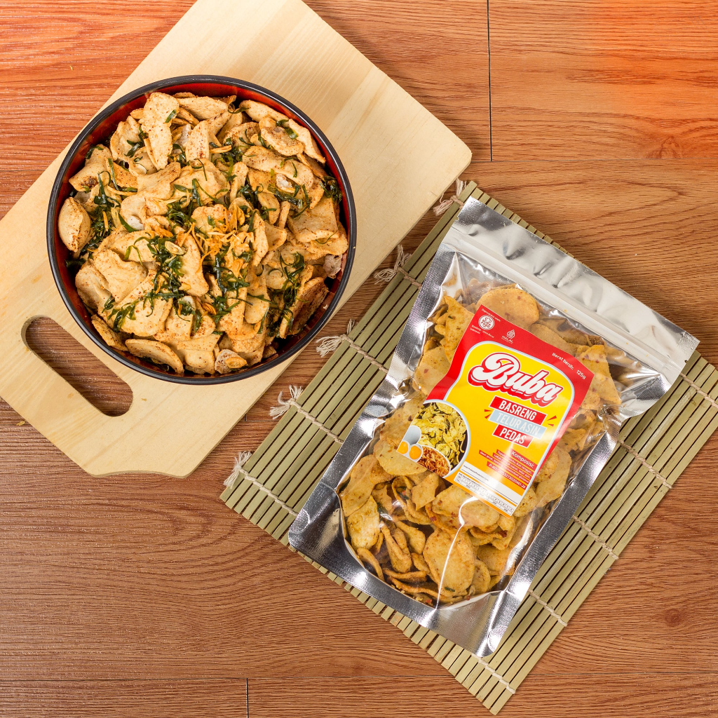 basreng dengan bentuk lebar dan tipis, dengan citarasa baru telur asin dan extra pedas. memakai telur asin asli yangberkualitas.