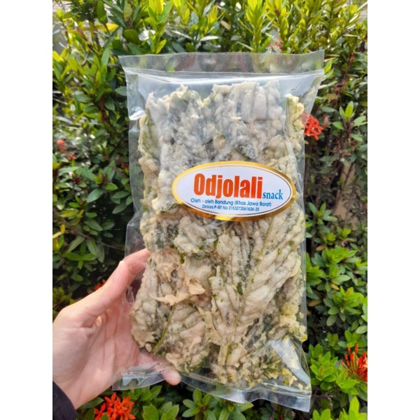 Yap berbahan baku daun bayam lebar yang dibalut dengan tepung lalu digoreng hingga bertexture super renyah dan garing, lalu dibumbui dengan bumbu gurih yang super lezat dan bikin nagih