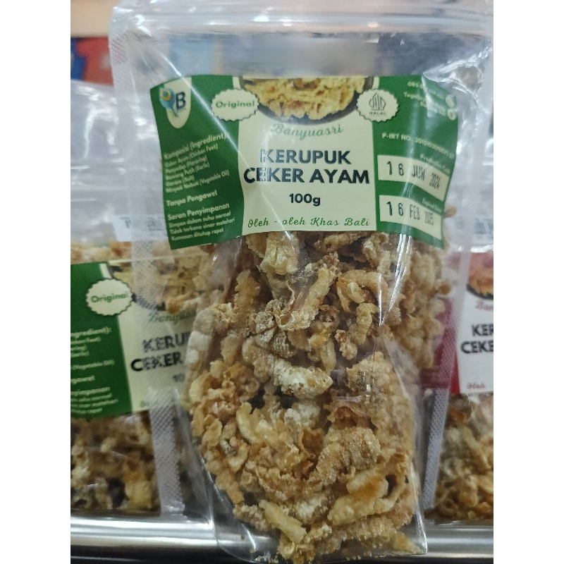KERIPIK CEKER AYAM KHAS BALI RASA ORIGINAL & BUMBU PEDAS 100 GR "BANYUASRI" ASLI BALI + BUBBLE WRAP