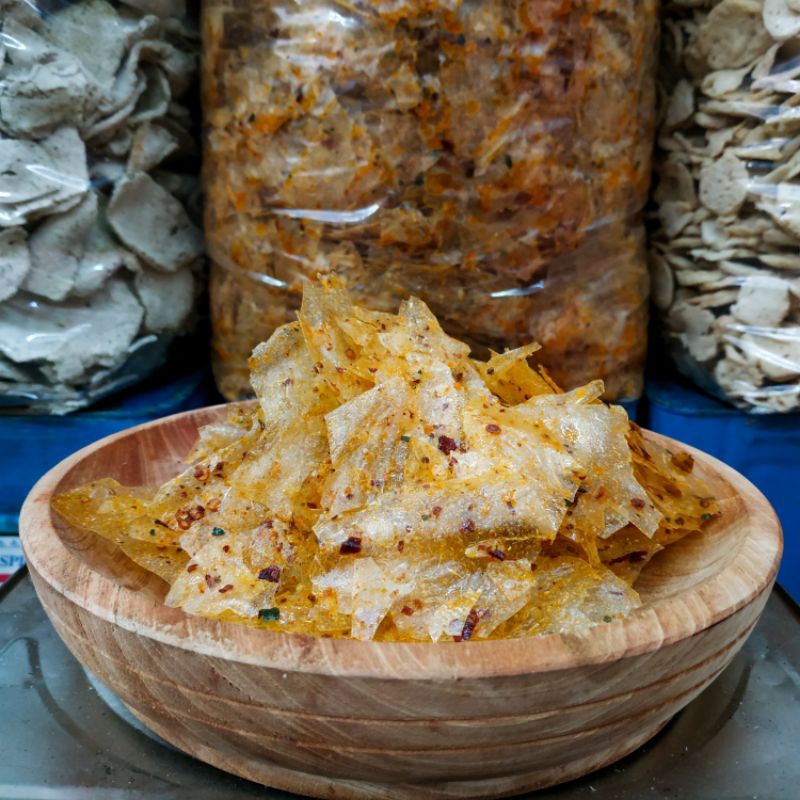 Keripik kaca atau yang karib disebut kripca merupakan makanan ringan yang terbuat dari adonan tepung tapioka, garam, dan air. Punya cita rasa pedas gurih daun jeruk & kencur, membuat kripca jadi salah satu cemilan kesukaan sebagian orang lantaran rasanya yang bikin ketagihan. Tersedia 3 variant rasa :