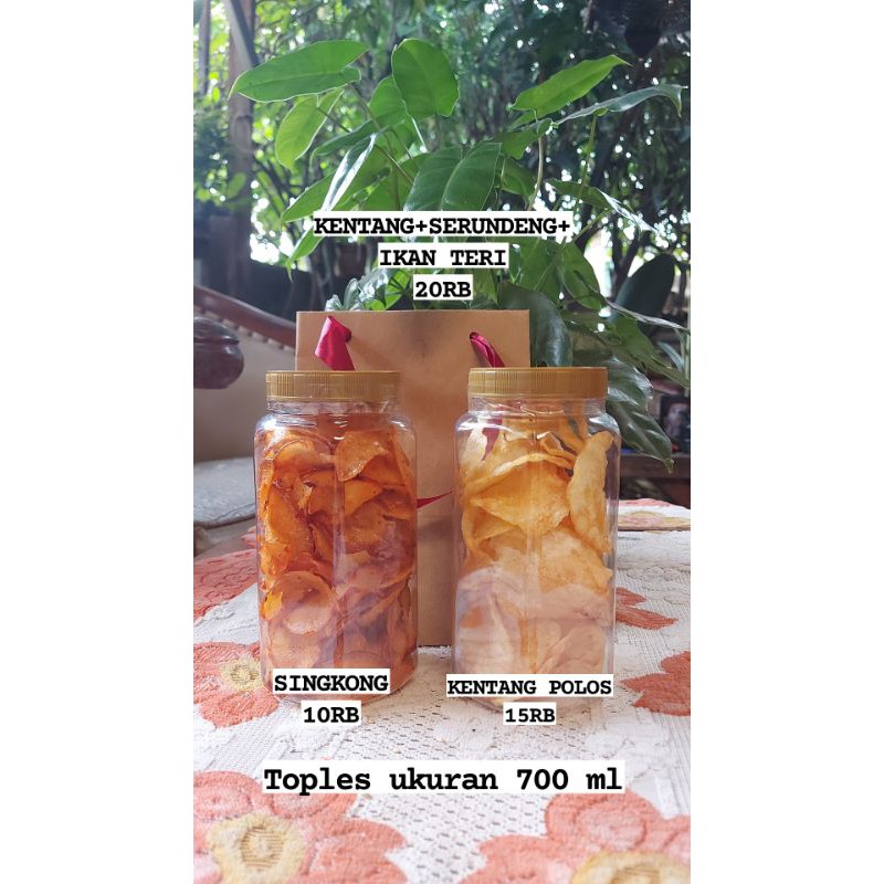 Keripik kentang home made tanpa pengawet polos rasa asin dengan kemasan toples ukuran 700ml
