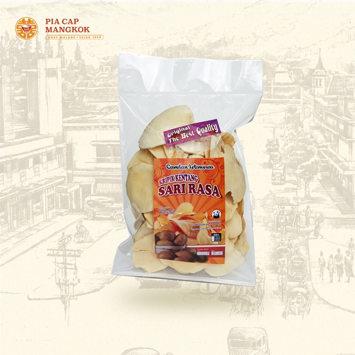 Cemilan khas malang yang wajib kamu beli saat berkunjung ke Malang, Keripik Kentang sarirasa yang terbuat dari kentang utuh yang dipotong tipis menjadikan keripik kentang ini asin, gurih, dan renyah.