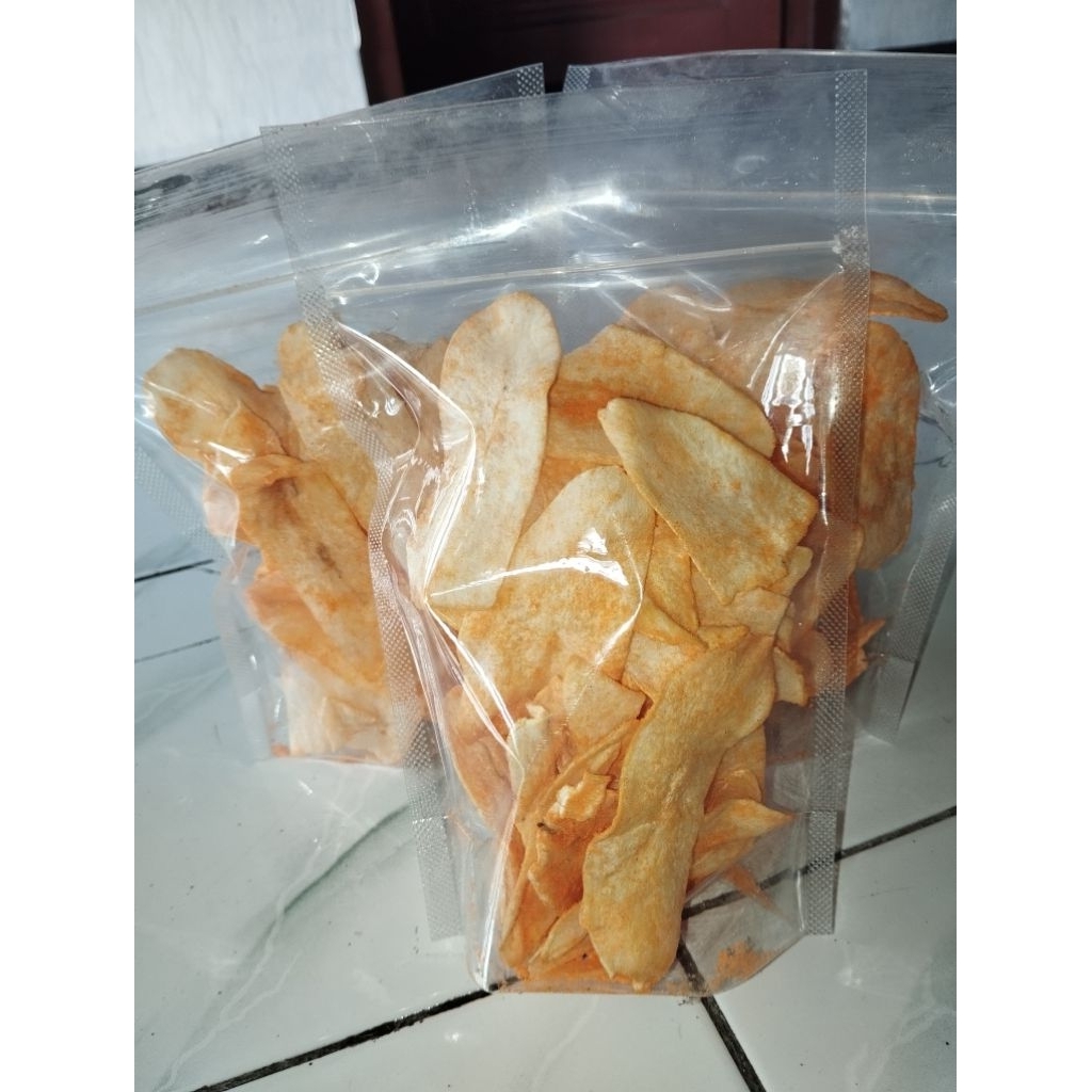 Ready keripik ketela renyah, asli dari pedesaan, pembuatannya manual, rasanya seperti keripik gadung, cocok untuk camilan keseharian, rasanya yang Nagih, dan harganya terjangkau