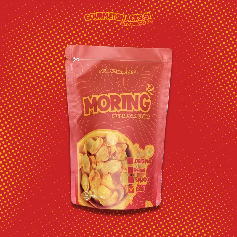 Buat kalian nih yang cari cemilan murah tapi gurih, renyah, pedas. Keripik moring dari gourmetsnacks.si cocok banget !