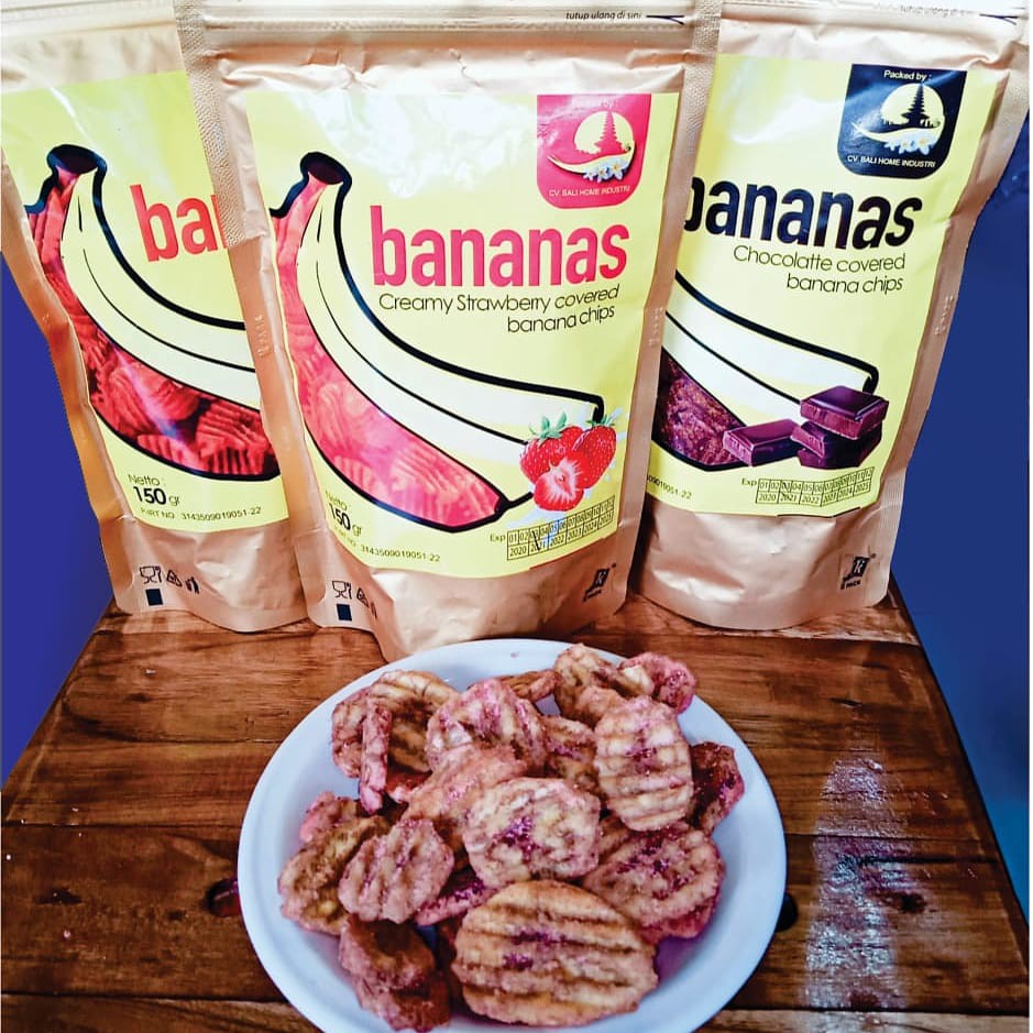 keripik pisang rasa susu, coklat, keju dan strawberry bisa pilih rasa pas pemsanan