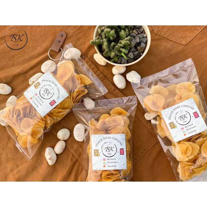 Keripik pisang BK.SNACK di olah dari buah pisang kepok pilihan. Menggunakan gula asli tanpa menggunakan bahan pengawet. Setelah di buka dari kemasan simpan di ruang tertutup/toples sehingga kualitas tetap terjaga.