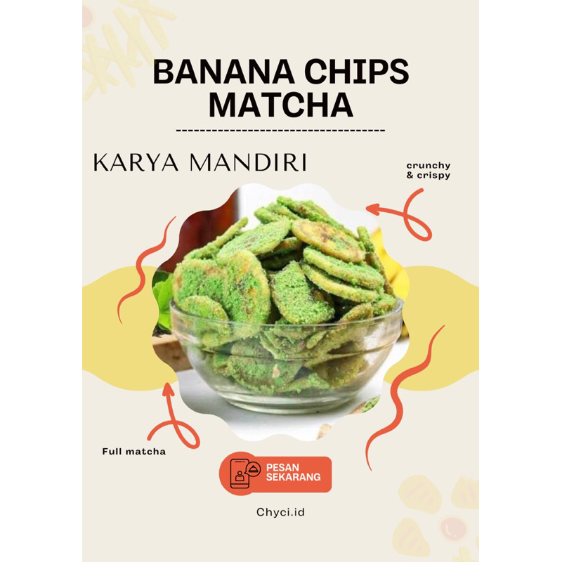 pisang yang di potong tipis dan goreng dengan garing dan kematangan yang pas sehingga tidak keras, serta perpaduan pisang dan bubuk greentea menghasilkan rasa yang begitu nikmat, cocok sekali di nikmati dan menemani di segala suasana mu.