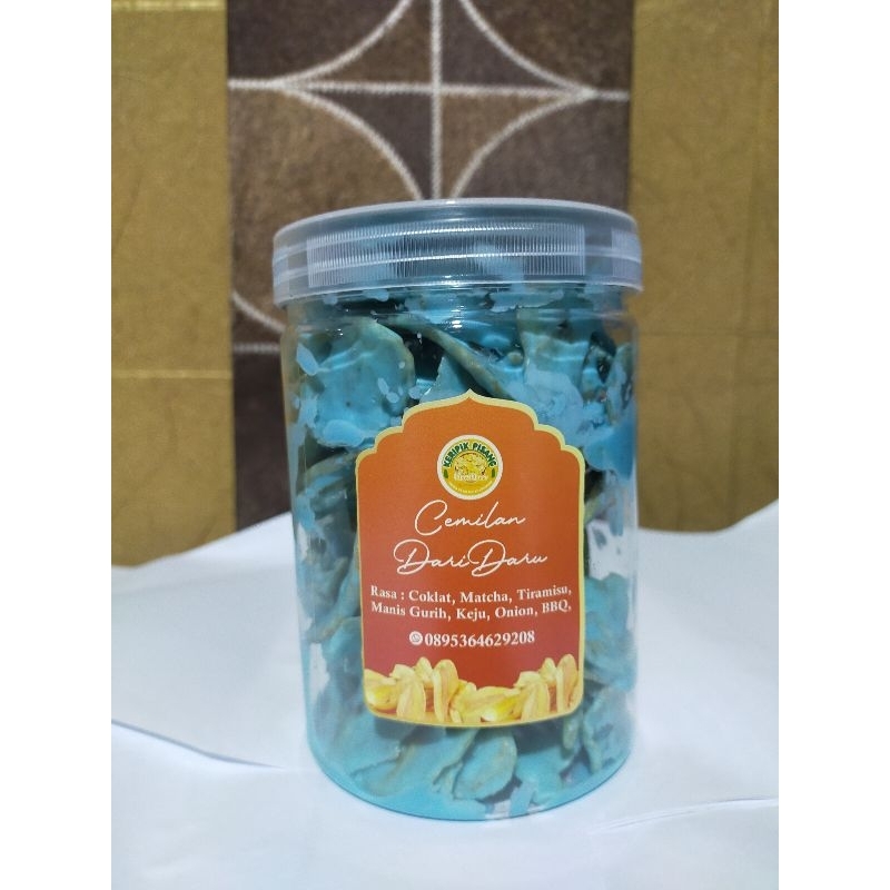 Nikmati lezatnya Keripik Pisang BLUEBERRY, camilan renyah dengan balutan coklat manis segar yang bikin ketagihan! Dibuat dari pisang pilihan yang diiris tipis dan digoreng hingga renyah, lalu dilapisi coklat premium yang lumer di mulut.