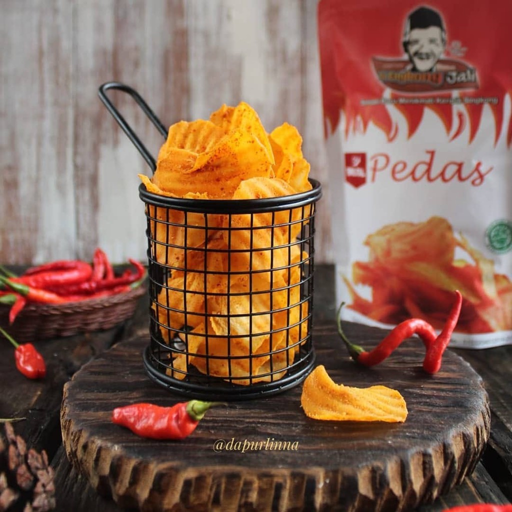 Kiripik singkong dengan rasa pedas yang diracik dengan bumbu racikan sendiri