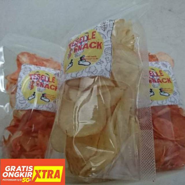 Keripik singkong balado "teselle" ini bener2 keripik fresh karena setiap pesanan kami baru melakaukan packing,dan keripik kami bener2 menggunakan bahan baku seperti singkong yg langsung di datangkan dari kebun dan rempah2 nya pun kami menggunakan rempah pilihan tanpa sedikitpun bahan pengawet jadi bener2 aman untuk di konsumsi..