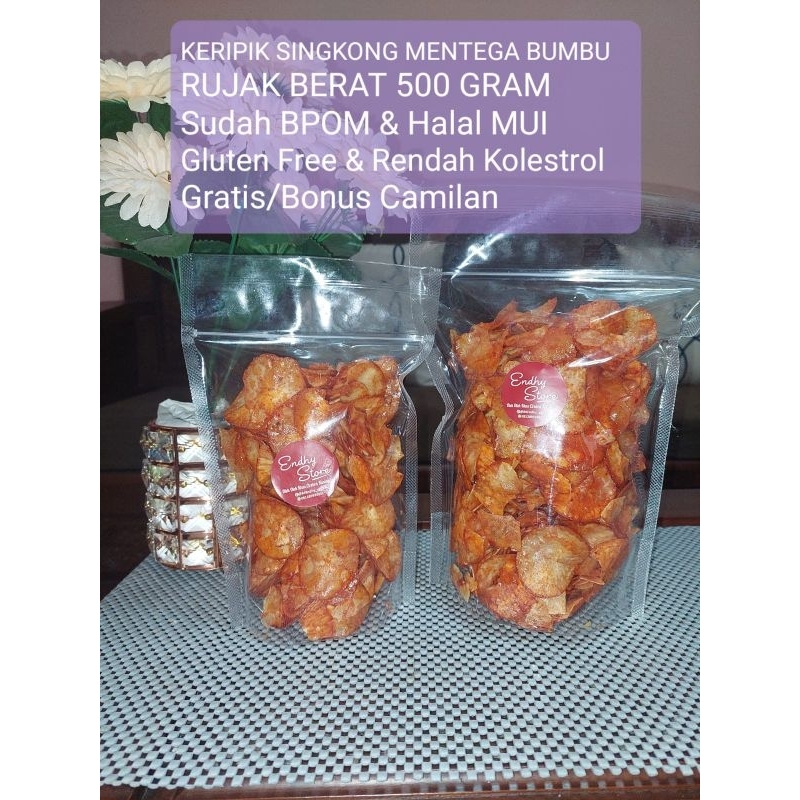 BUDAYAKAN MEBACA SAMPAI SELESAI Keripik singkong warisan leluhur dengan rasa pedas manis, yang terbuat dari SINGKONG MENTEGA pilihan,di goreng menggunakan minyak nabati(Sunco) dan hanya dua kali penggorengan ,tidak di pakai berulang ulang