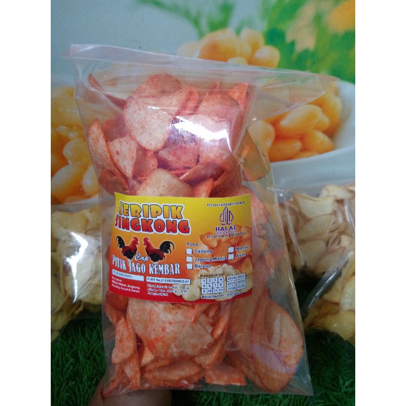 KERIPIK SINGKONG RENYAH RASA BALADO PEDAS GURIH SUDAH LABEL HALAL DAN P-IRT 250 Gram