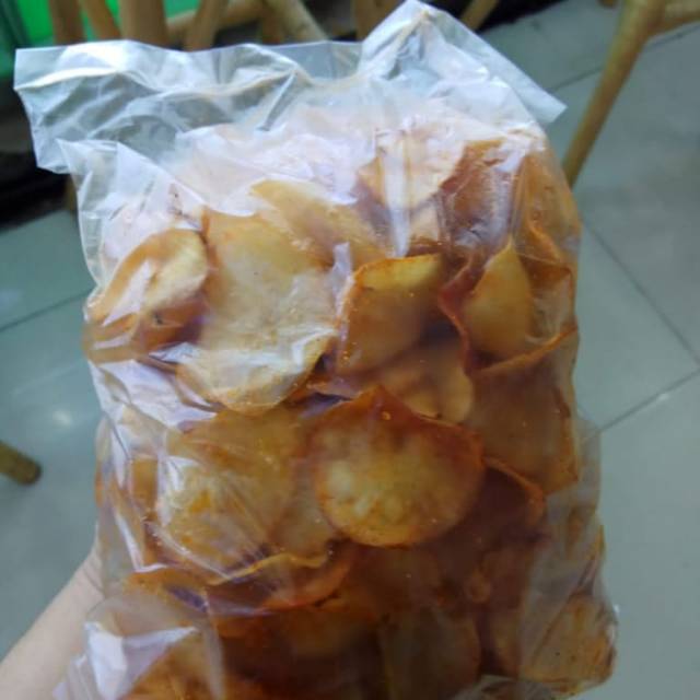 Cemilan waktu santai di buat dari ubi pilihan yang medok membuat keripik renyah di mulut.