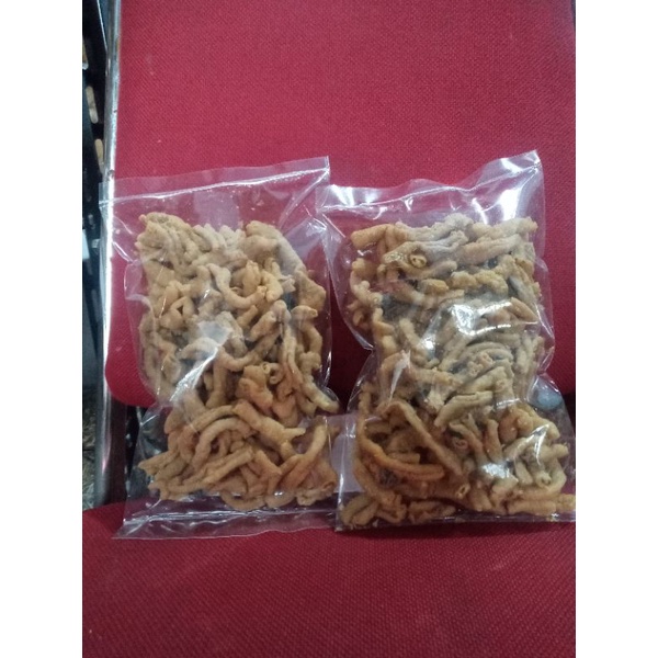 keripik usus crispy ayam rasanya asin,gurih,renyah,dan enak kemasan 200 gram