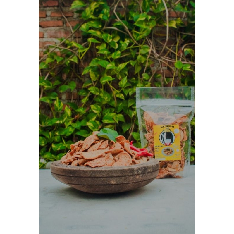 basreng MAMINOM SNACK, keripik basreng bentuk koin tipis,renyah dan lezat,terbuat dari daging ayam pilihan di oleh dengan bumbu rempah pilihan sehinga menjadi makanan ringan yang enak