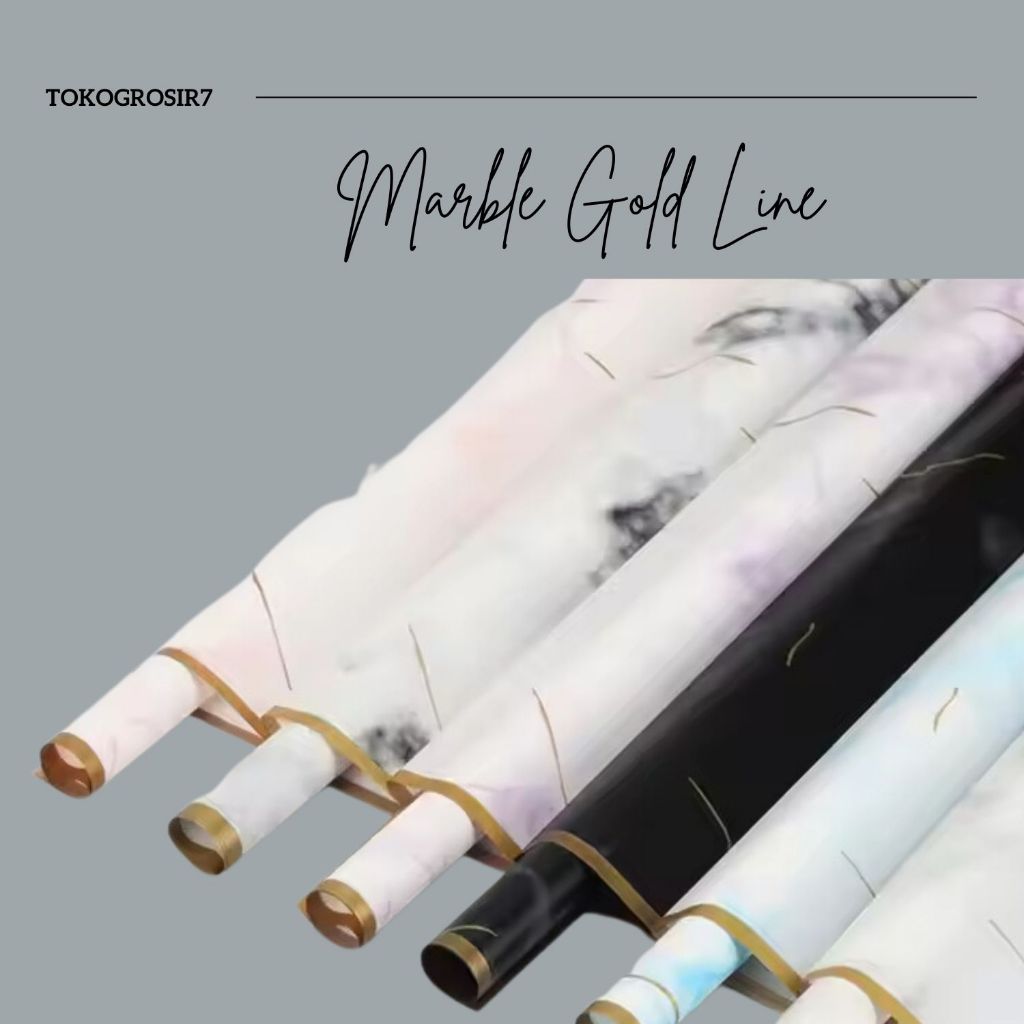 KERTAS BUKET BUNGA MOTIF MARBLE GOLD WRAP PAPER LINE CELLOPHANE WATERPROOF