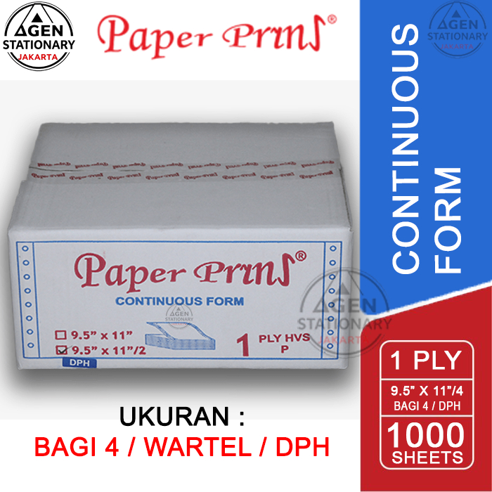 KERTAS CONTINUOUS FORM PAPER PRINT 9.5 X 11 1 PLY DPH BAGI 4 HVS RANGKAP 1 WARTEL