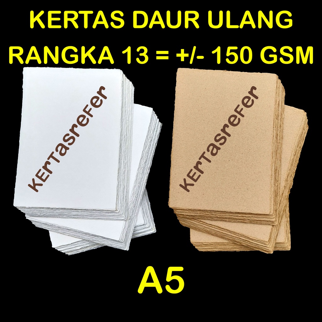 Produk handmade buatan tangan menjadi kekhasan tersendiri kertas daur ulang dengan sisi pinggir / tepi acak natural.