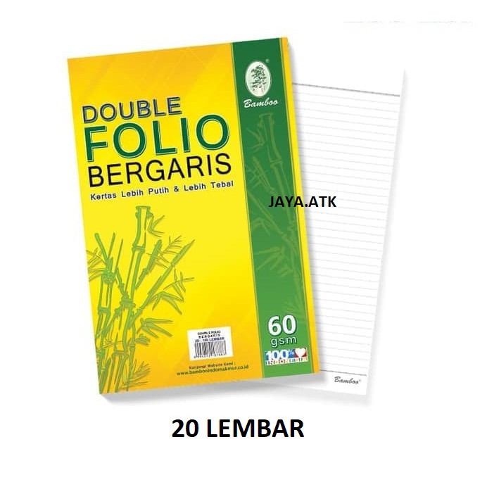 KERTAS DOUBLE FOLIO KERTAS BERGARIS FOLIO F4 70 GSM BAMBOO PER 20 LEMBAR