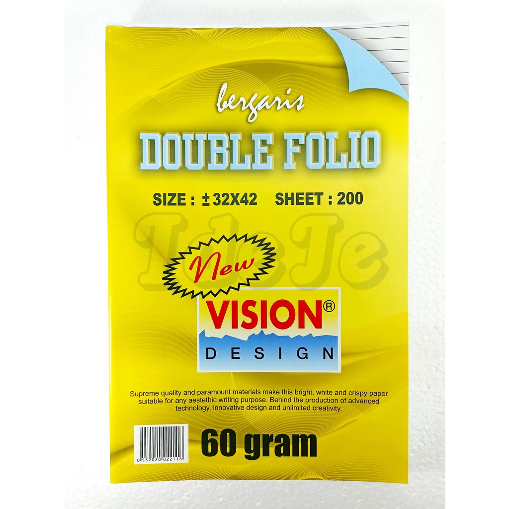 Kertas folio double bergaris merk New Vision yang cocok digunakan dalam tulis menulis catatan ataupun ujian sekolah/perkantoran.