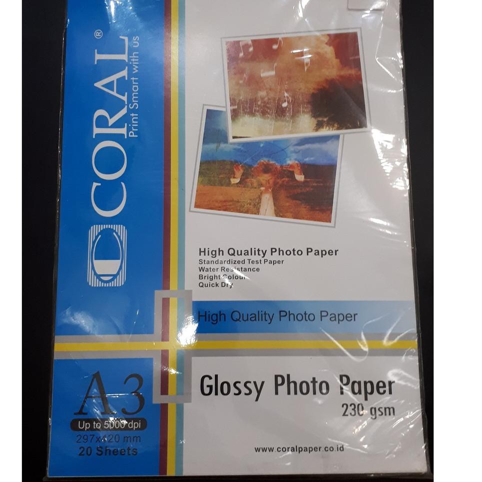 KERTAS FOTO CORAL GLOSSY A3 230 GSM (KODE 9986)
