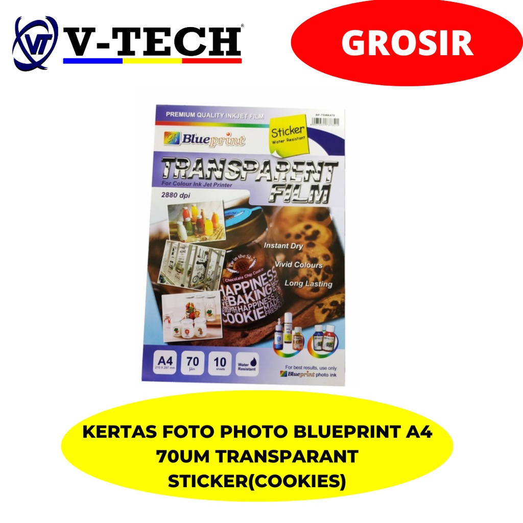 KERTAS FOTO PHOTO BLUEPRINT A4 70UM TRANSPARANT STICKER(COOKIES)