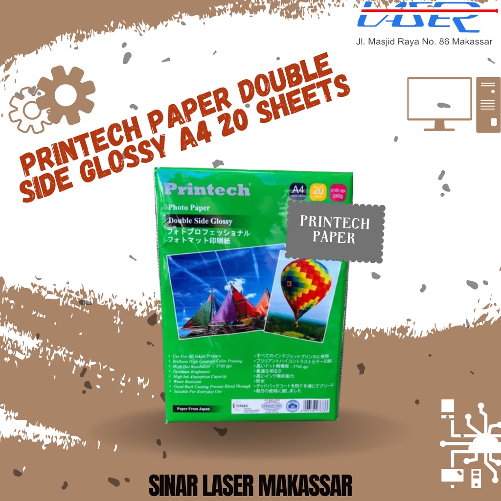 KERTAS FOTO PRINTECH DOUBLE SIDE GLOSSY A4 20SHEETS / KERTAS FOTO MURAH
